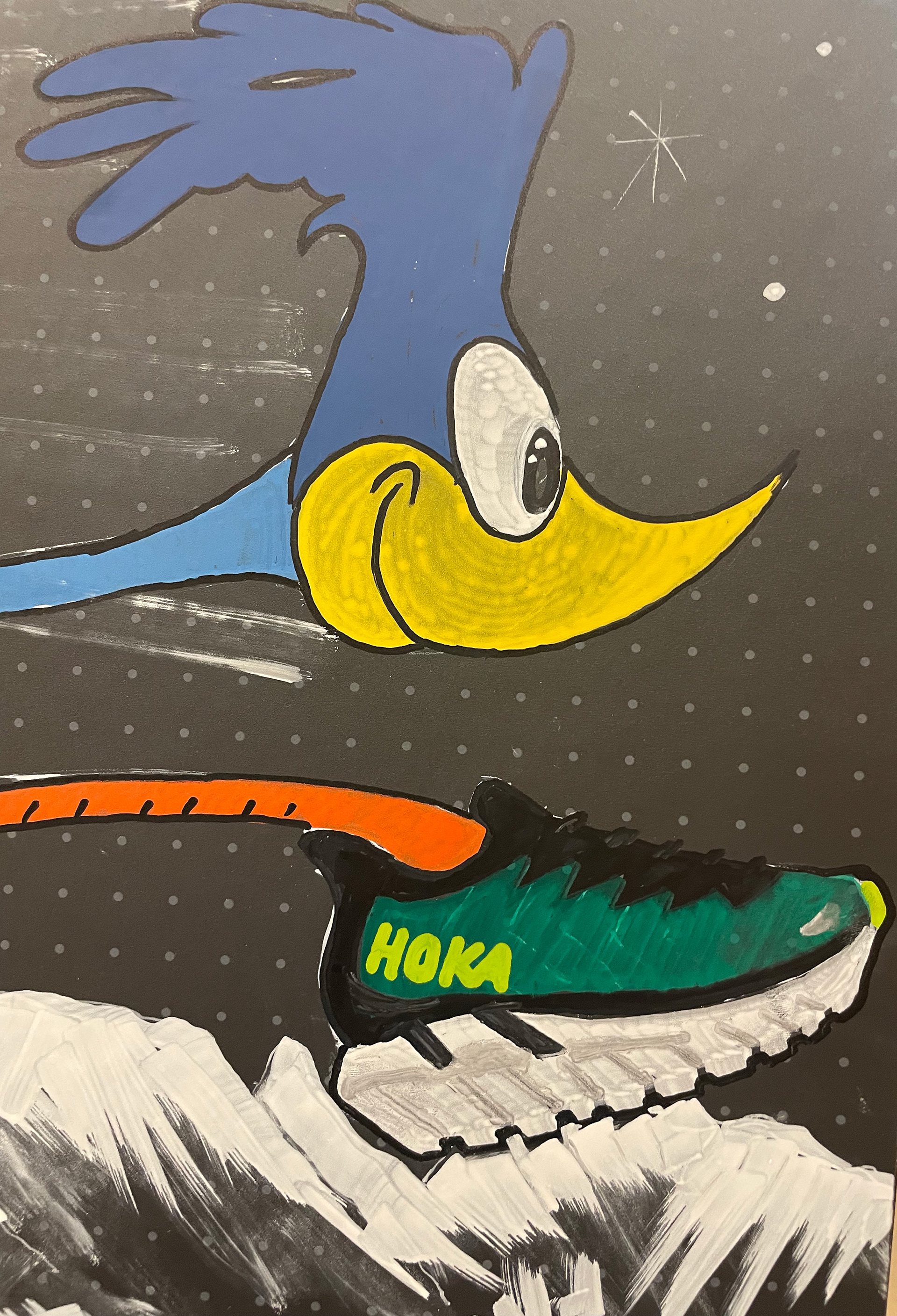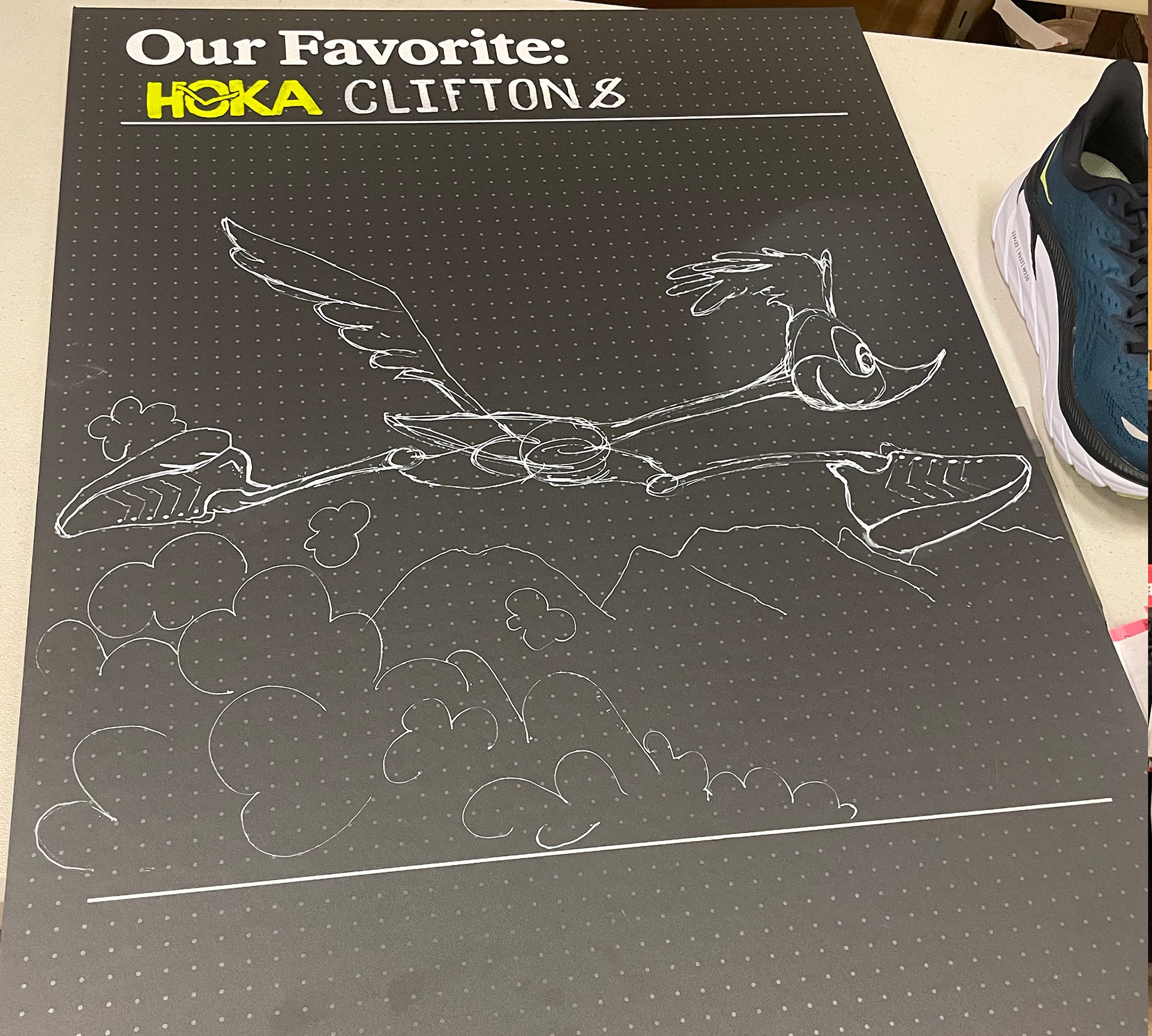 REI plans to expand their fitness and running departments. We decided to promote the HOKA Clifton 8. Although I typically prefer to create original characters, the road runner was fun to draw and I was able to focus my effort in drawing the shoe as accurately as possible, and include the familiar scenery of Summit county that includes Buffalo mountain and Red peak.