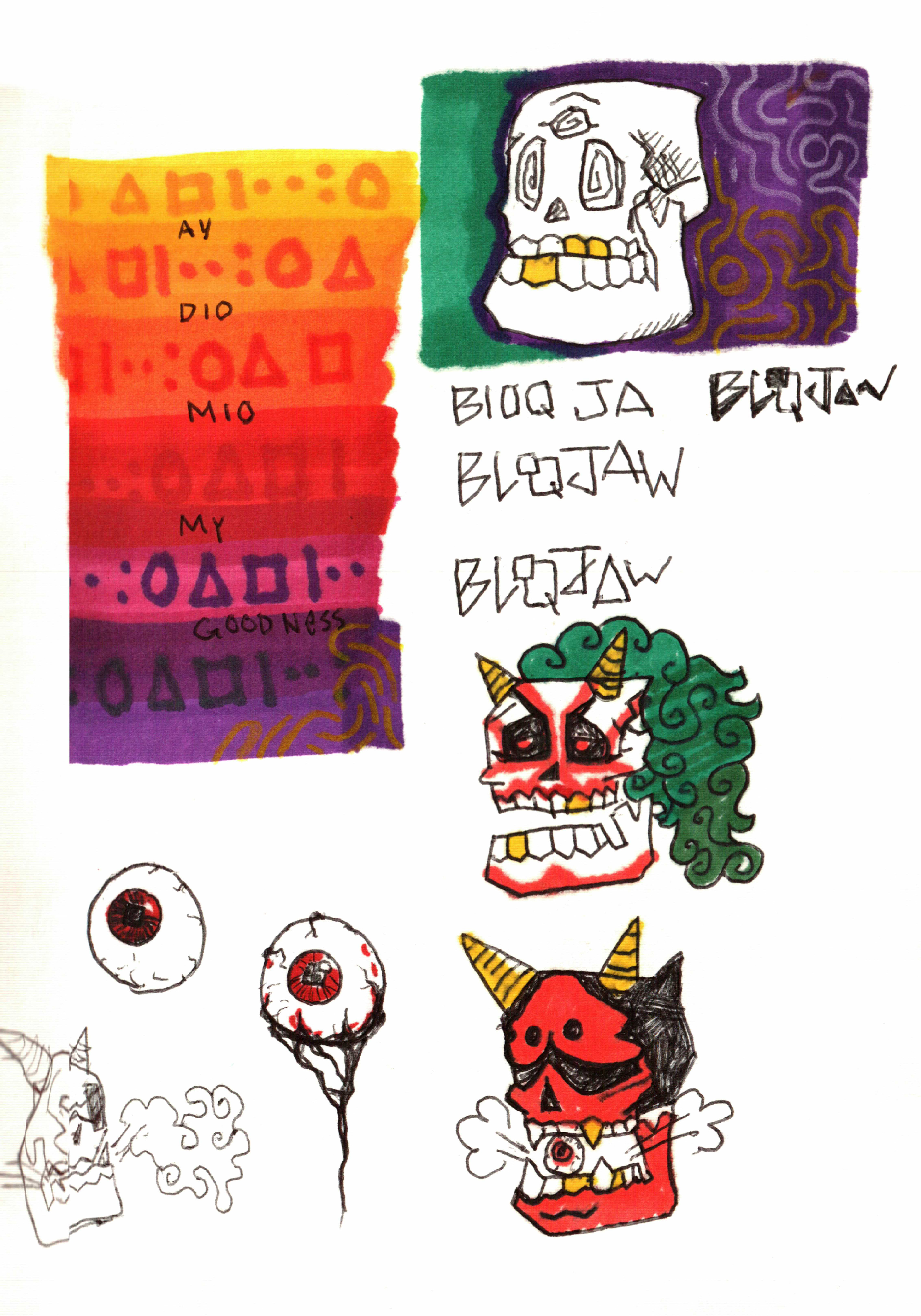While the back piece is the main content, I felt compelled to unify the art on the jacket; one eyeball is in the mouth, the other two are located on the sleeve and front.