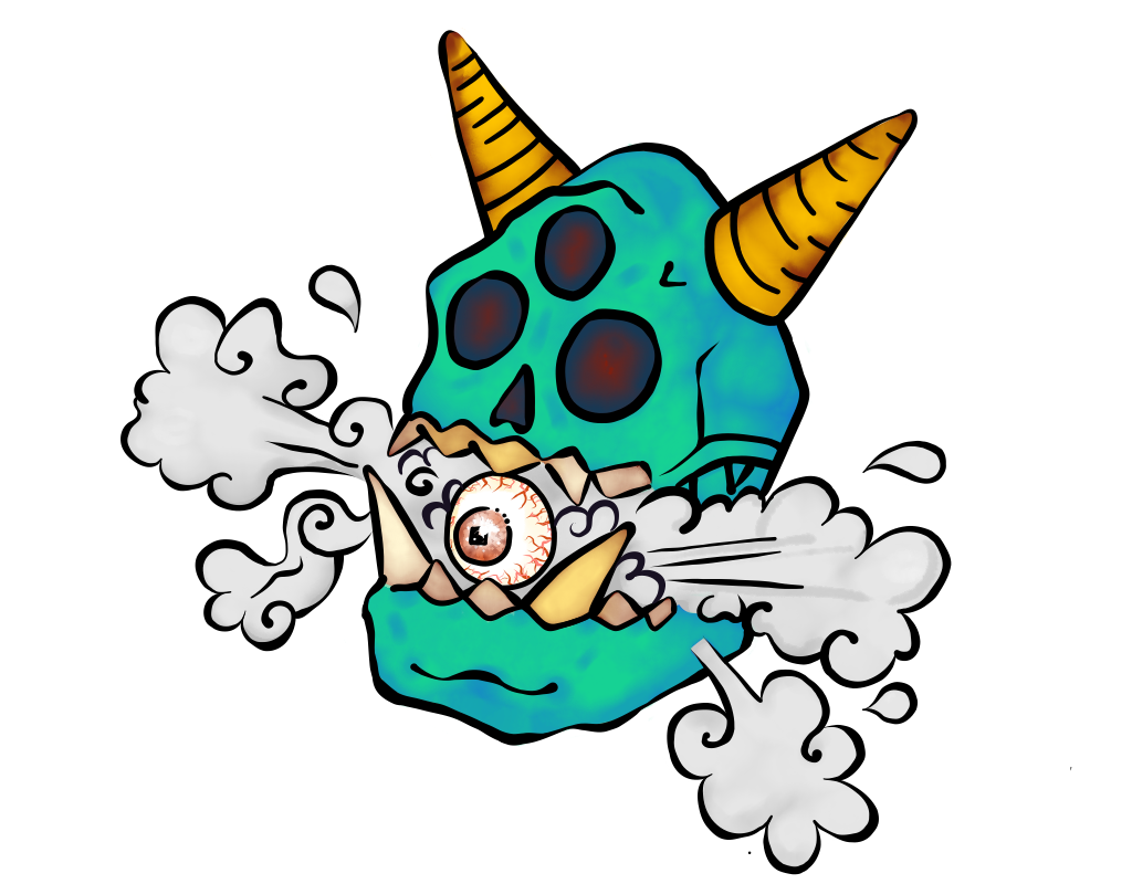 The design is inspired from parts of my cultural heritage, Ukiyo-e and Japanese mythology. However, the three eye sockets are of my own invention.